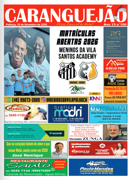 Anunciar no Jornal Caranguejão irá ajudar a sua empresa a crescer ainda mais no mercado, pois você atingirá com eficácia seu público-alvo. Faça a comunicação de sua empresa e/ou marca ser ainda mais produtiva junto a nós. Com 16 anos, O Jornal Caranguejão é o mais antigo jornal em circulação na cidade de Palhoça. Ao mesmo tempo, está entre os mais modernos periódicos do país - por seu texto e design - referência nacional quando se trata de credibilidade e independência. Seus leitores se distribuem entre todas as classes sociais. O Caranguejão é o preferido dos formadores de opinião, sendo a marca mais lembrada pelo povo palhoçense
